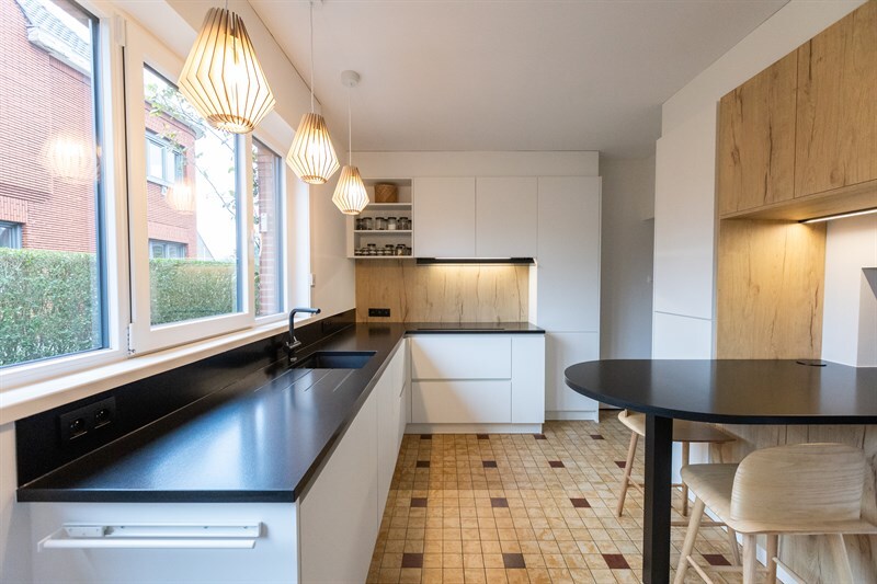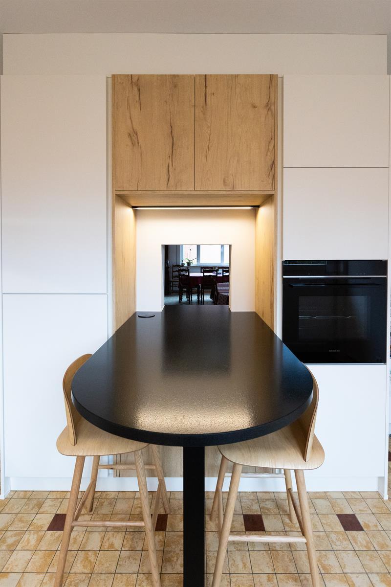 CuisineCuisine contemporaine optimisée de couleur bois et blanc à Mons