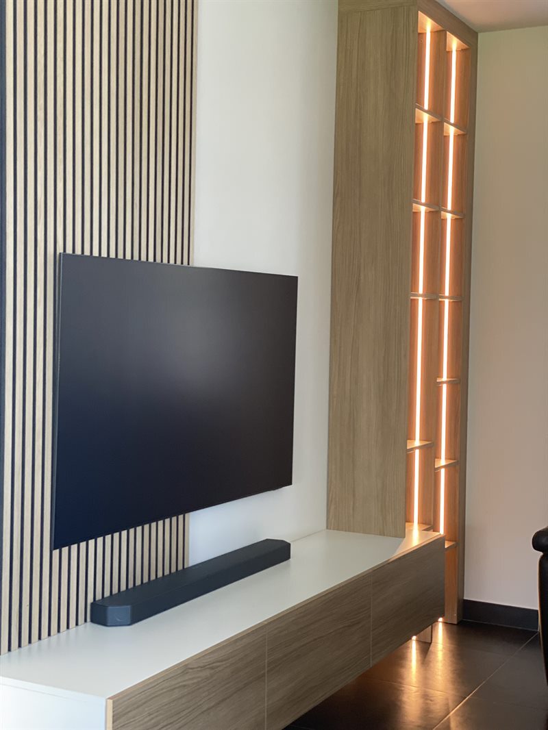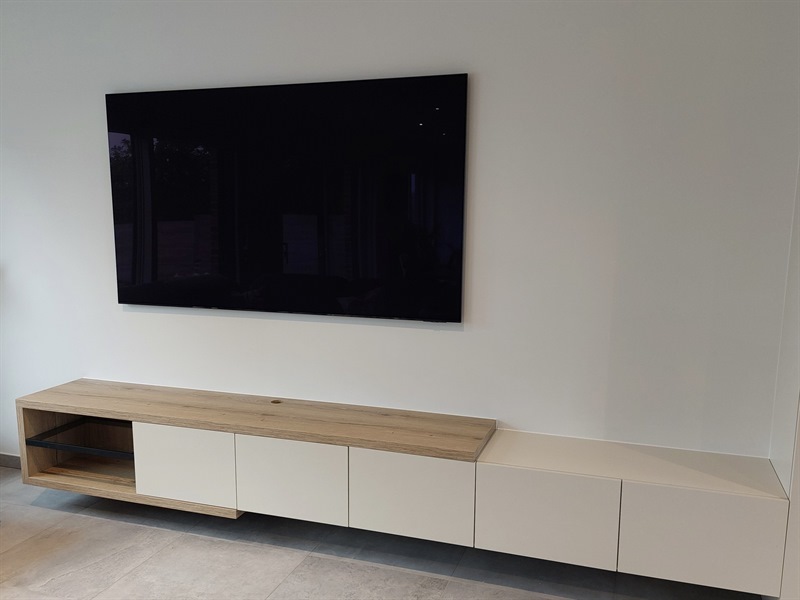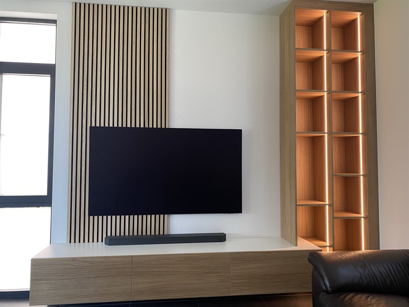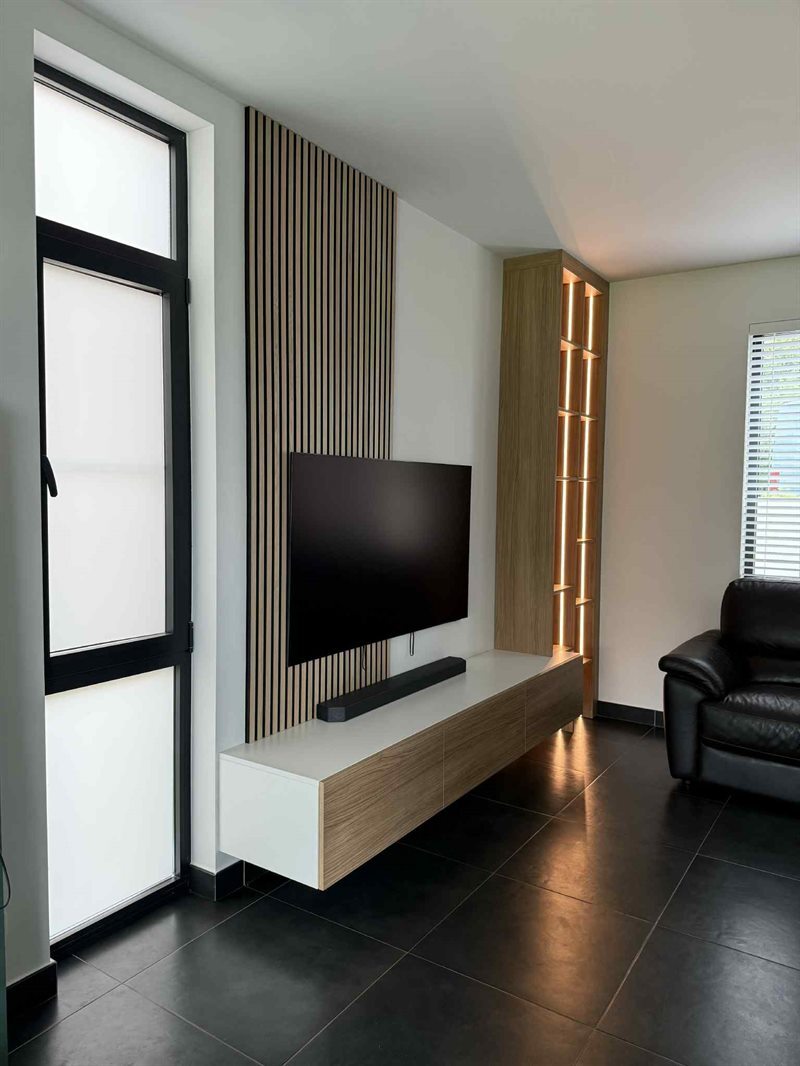 Salon-séjourMeuble TV moderne avec espace déco illuminé à Havré