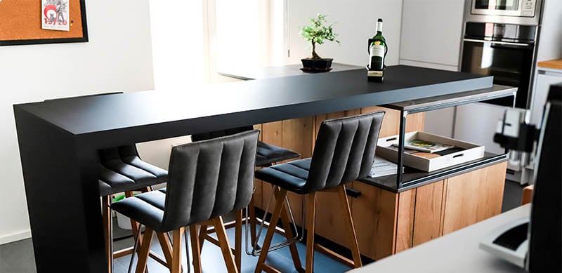 CuisineCuisine fermée moderne noir mat, bois avec ilot central