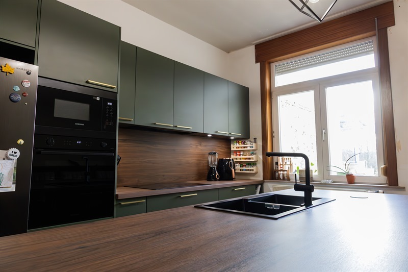 CuisineCuisine fermée de style moderne bois et beige à Strepy-Bracquegnies