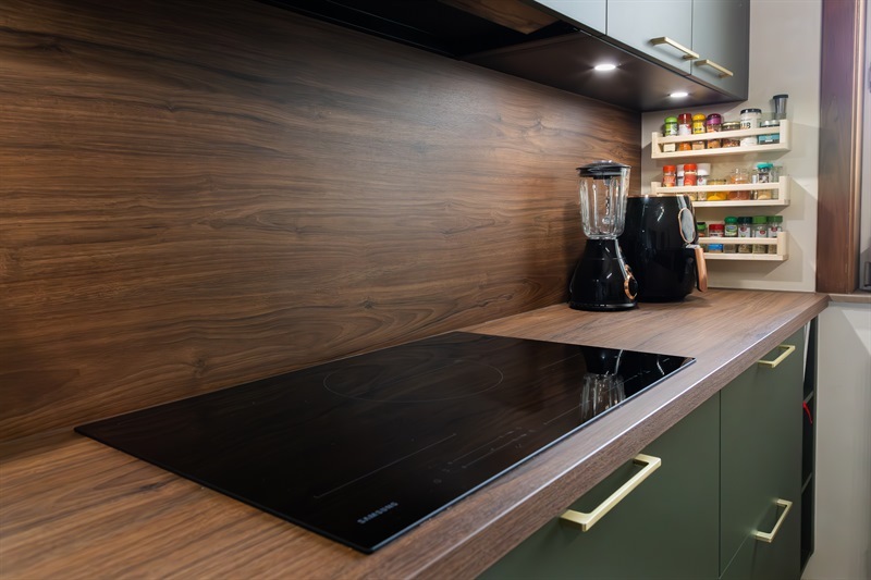 CuisineCuisine ouverte de style moderne bois et gris à La Louvière