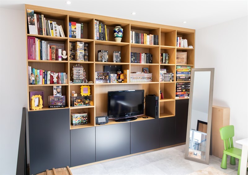 Autres piècesBibliothèque et rangements d'entrée bois, noir et blanc à Le Roeulx
