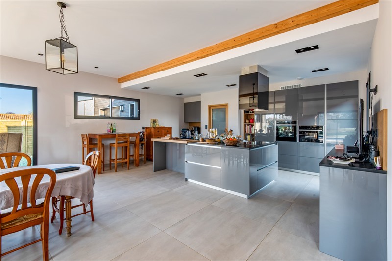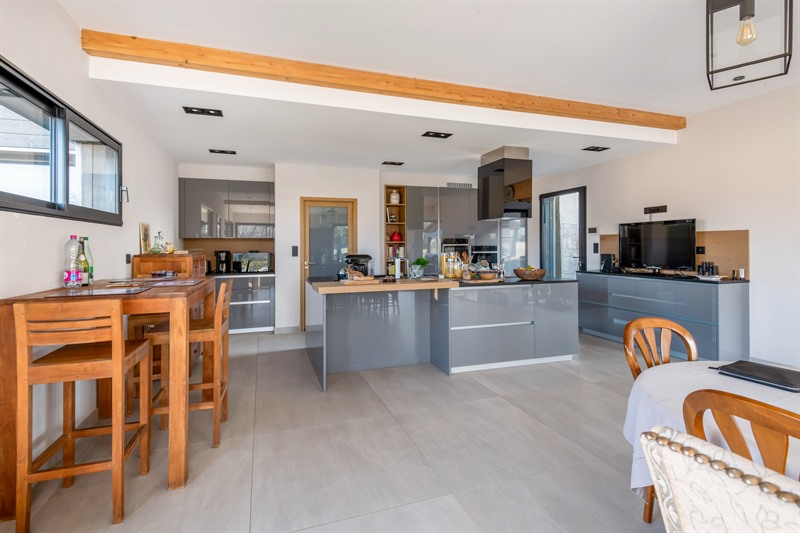 CuisineCuisine ouverte de style moderne bois et gris à Clarensac