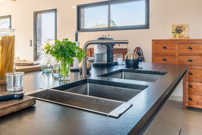 CuisineCuisine ouverte de style moderne bois et noir à Chaniers