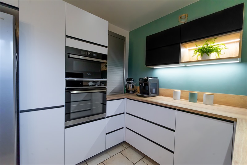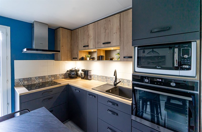 CuisineCuisine fermée de style contemporain bois et noir à Charleville-Mézières