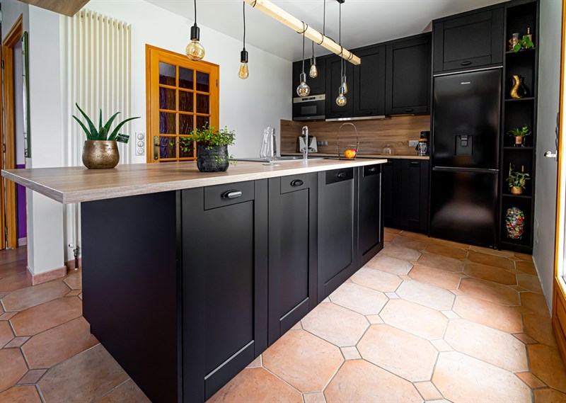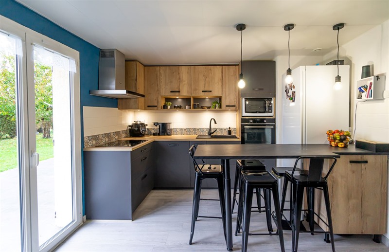 CuisineCuisine ouverte de style campagne bois et noir à Bergnicourt