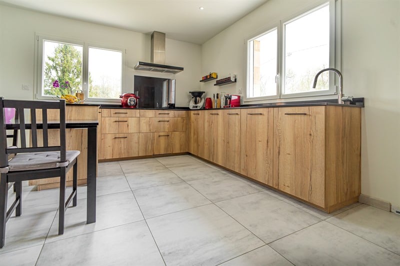 CuisineCuisine ouverte de style contemporain bois et gris à Amagne
