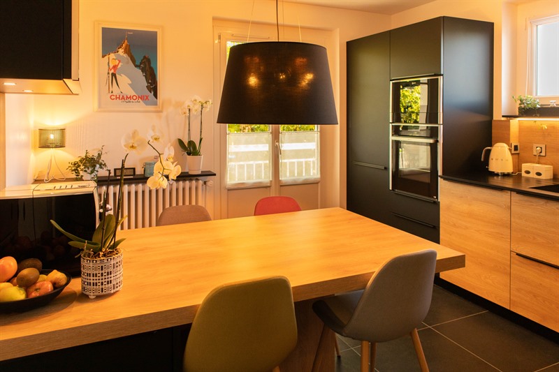 CuisineCuisine blanche et bois avec façade encastrée à Vétraz-Monthoux