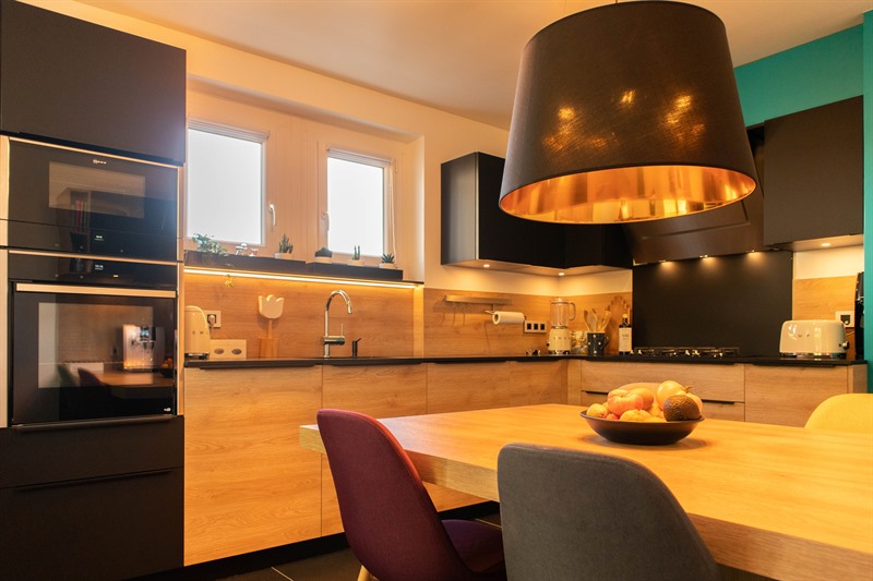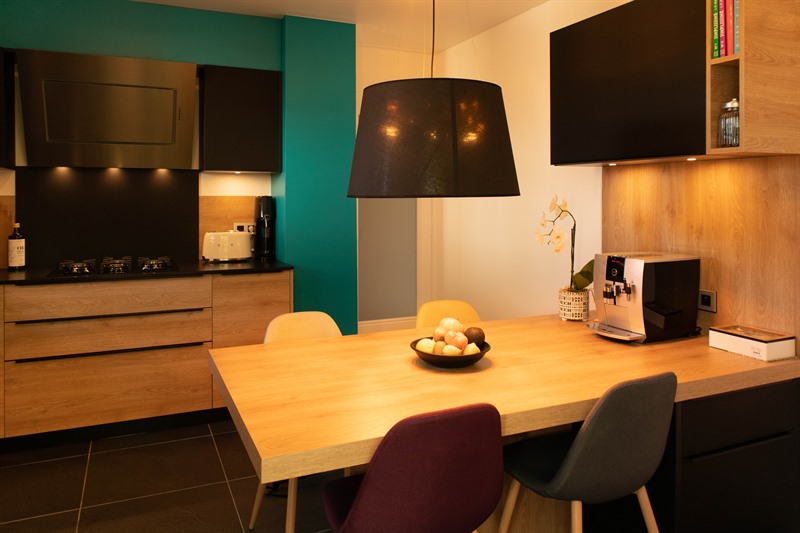 CuisineCuisine fermée contemporaine bois et noir à Ville-La-Grand