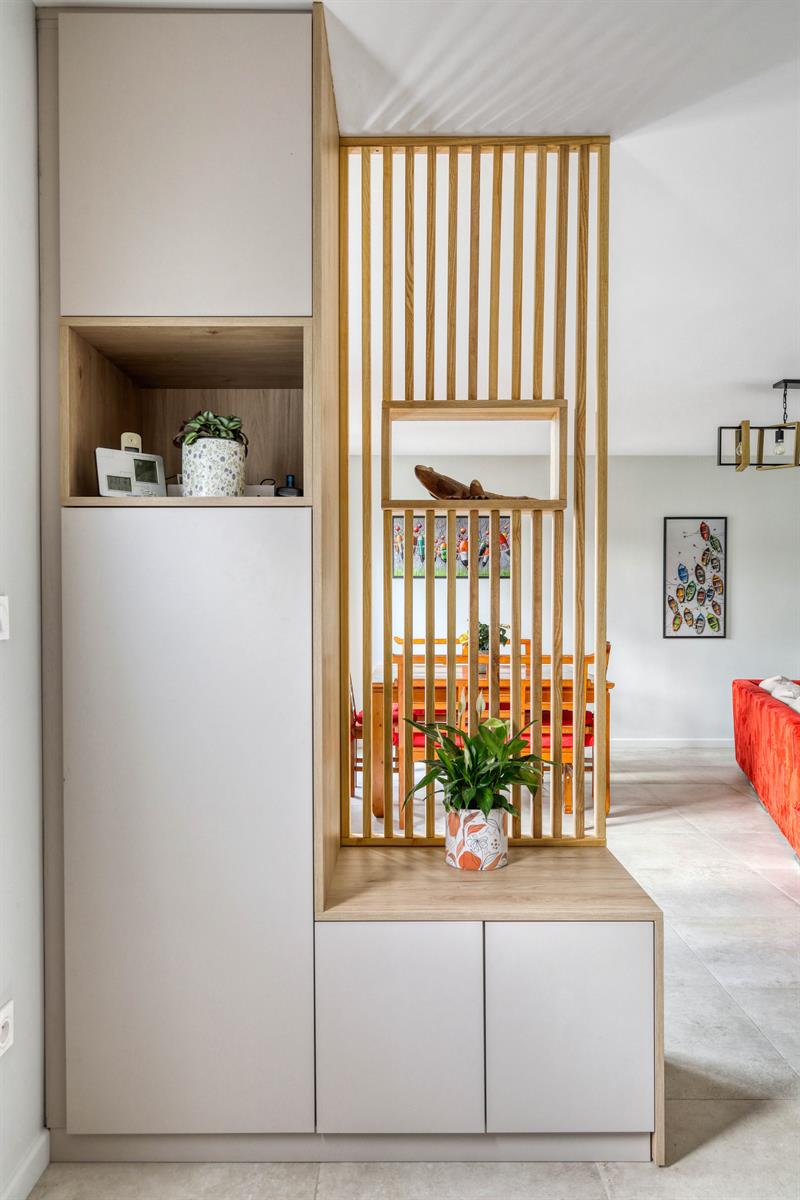 Salon-séjourSalon ouvert blanc avec claustra en bois à Blois