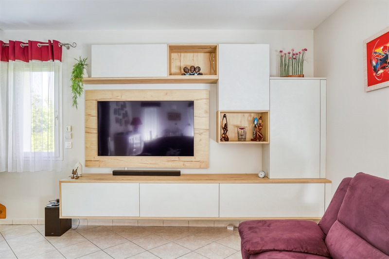 Salon-séjourMeuble TV et bibliothèque bois et gris à Bléré