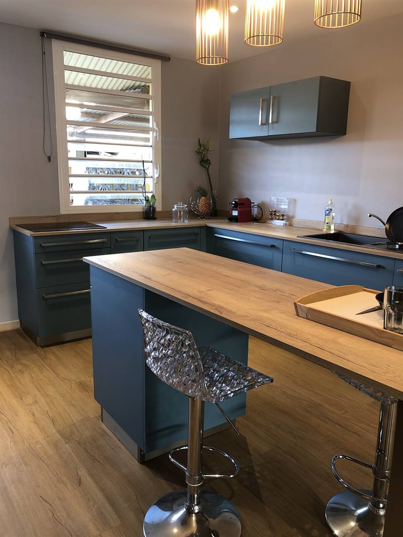 CuisineCuisine ouverte de style contemporain bleu à Remire Montjoly
