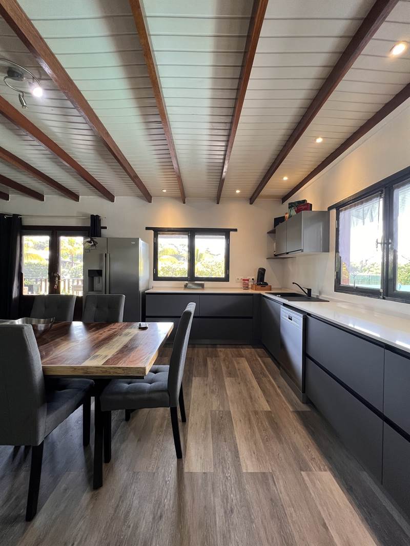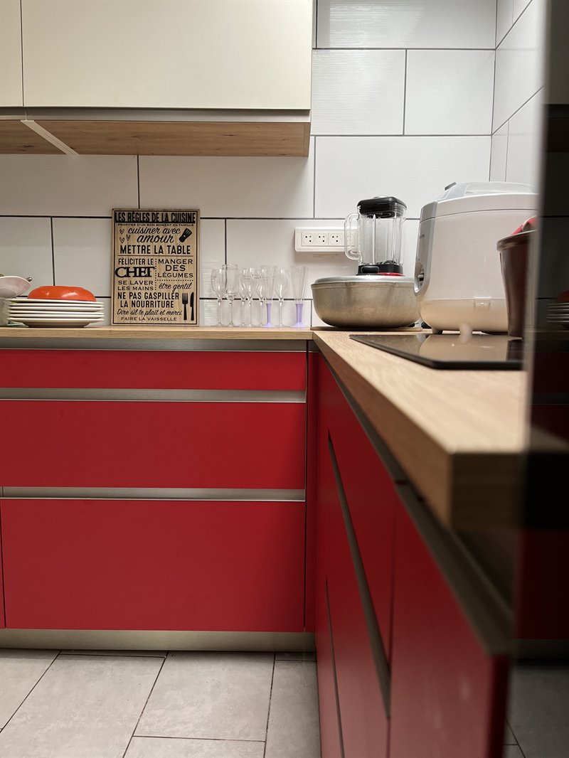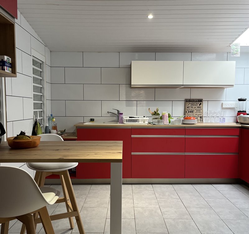 CuisineCuisine fermée contemporaine rouge et bois à Cayenne