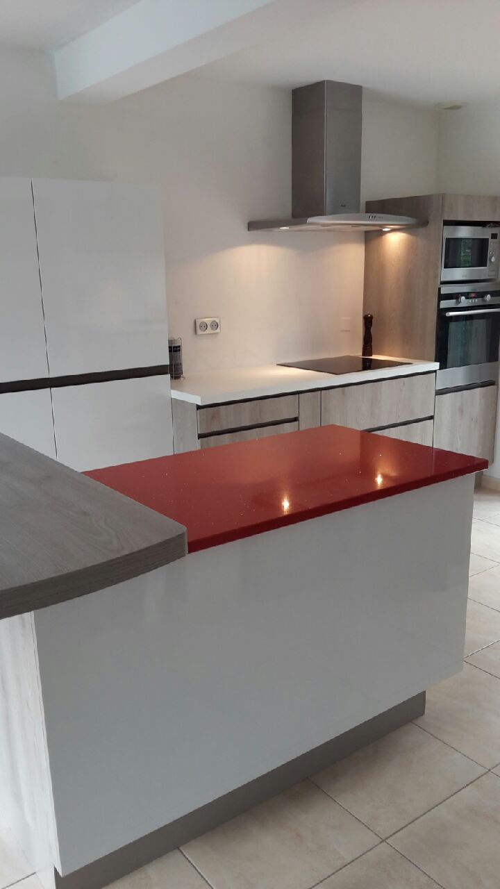 CuisineCuisine moderne bois et rouge à Pluvigner