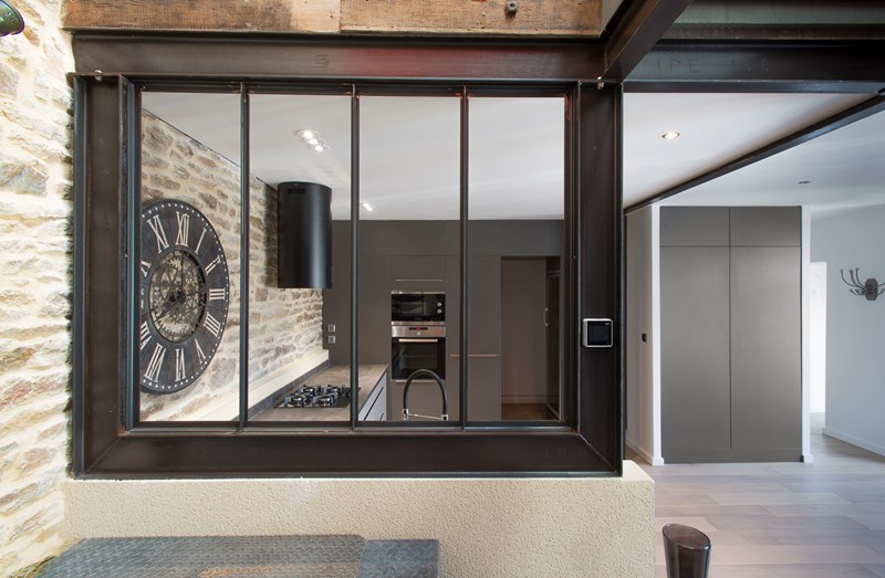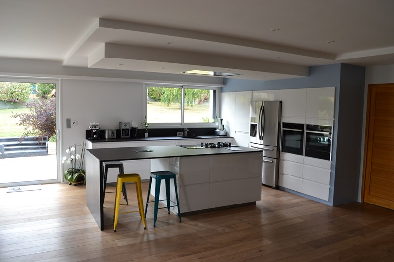 CuisineCuisine industrielle blanche sans poignée et verrière à Vannes