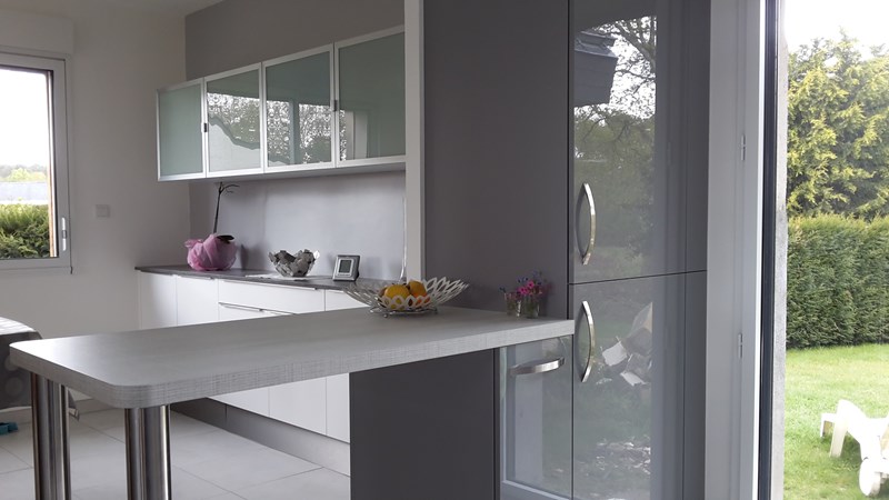 CuisineCuisine fermée de style contemporain blanc et gris à Ploeren