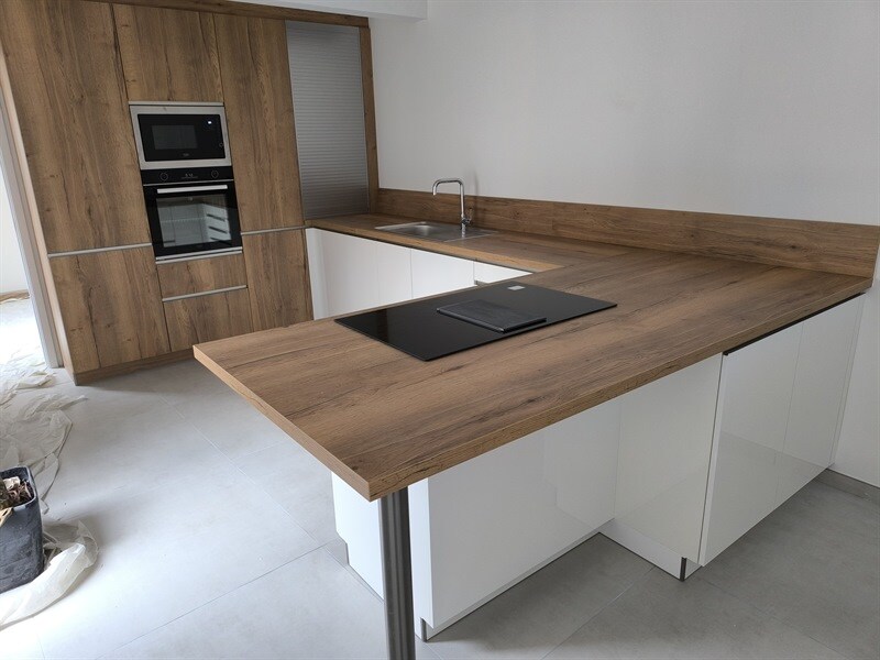 CuisineCuisine ouverte de style moderne bois et blanc à Lunel