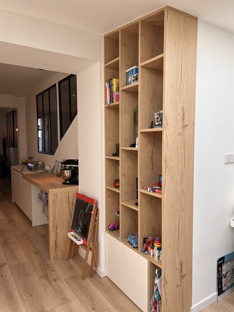 le 17 décembre 2024Cela fait maintenant 5 mois que notre cuisine est posée (et notre petite salle de bain). La cuisine a été réfléchie, pensée et personnalisée avec Mathieu. Son professionnalisme, son investissement, les qualités d'échange et de propositions personnalisées nous ont convaincu pour lui faire confiance et à raison ! Nous n'aurions jamais pu avoir un tel résultat dans les grandes enseignes. Comme beaucoup de gens : nous y avons été pour se faire un avis et comparer avant de s'engager avec Mathieu. Vous pouvez faire confiance aux artisans travaillant avec lui (électricien, plombier, poseur pour notre part), nous en avons été satisfaits. Si nous devions refaire un aménagement de meubles personnalisés, quel qu'il soit, nous repasserions par lui sans aucune hésitation. Nous recommandons donc ses services, les yeux fermés.