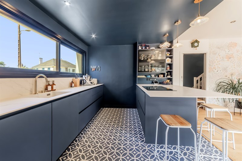 CuisineCuisine design bleu et carreaux de ciment à La Chevrolière