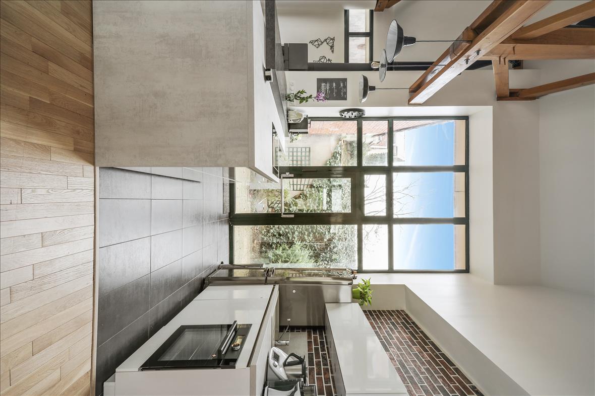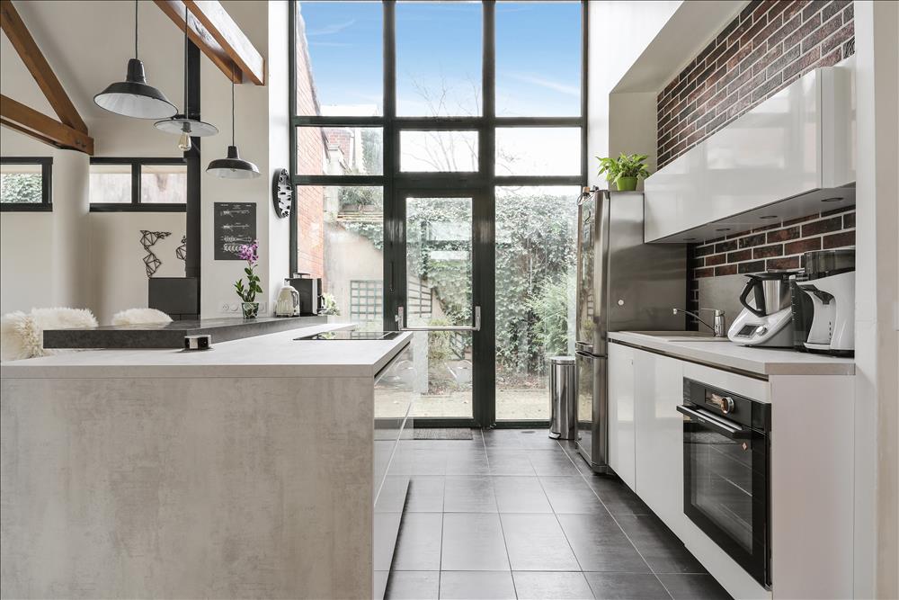 CuisineCuisine blanche et bois avec une verrière à Montereau-Fault-Yonne